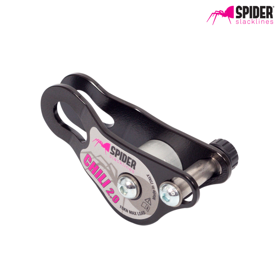 The best linelock for 25mm (1 inch) slackline Designed and produced by Spider Slackline made in Italy. A linelock is essential for tensioning lines longer than 50 meters. Chili 2.0 it has a central cylinder anodized aluminum high strength with enlarged diameter to provide a high efficiency lock. The plates are 4mm steel 310 and the steel pin 10.8mm allow to have a high work load and thanks to the fastening method "quick lock pin" You can anchor the webbing so fast and easy. The rear hole of 17mm width makes it compatible with all connectors. Made in Italy.