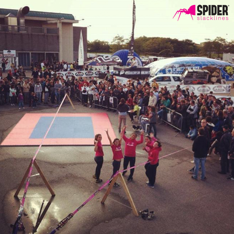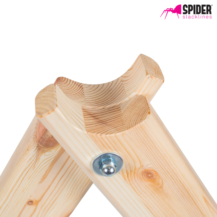 A wood stand system to raise the slackline using ground anchor Resistant, lightweight and handy. A great option when setting up a slackline with ground anchors. The spider slackline stands are high strength solid wood structures. They have rounded contact points and foot to ensure a low wear surface for the slackline.