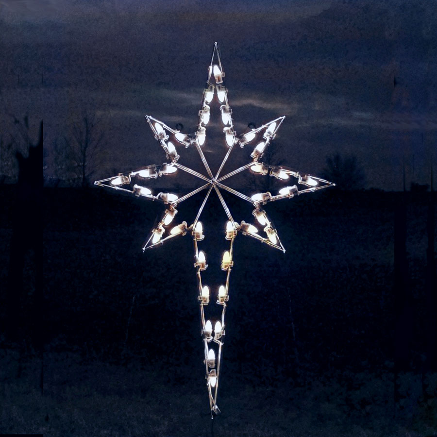Draw attention to your nativity scene with this bright LED Star of Bethlehem by Holiday Lighting Specialists. Handmade with 39 commercial-grade cool white C7 LED lights, this light-up star brings a spectacular finishing touch to any nativity narrative. This star is for hanging only.