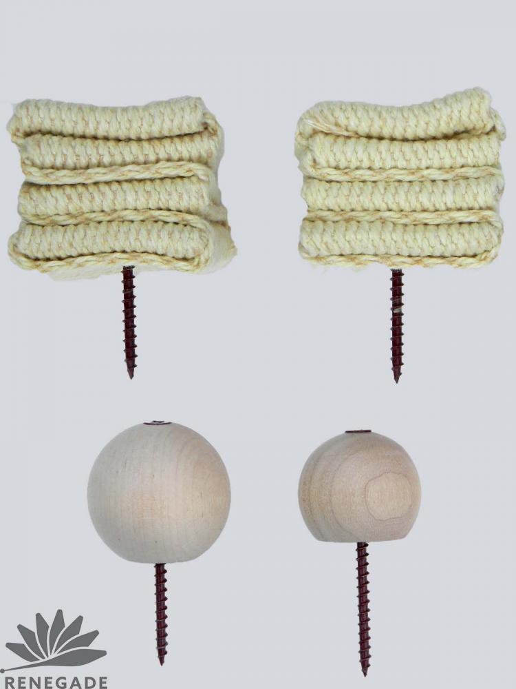 Refurbish your swinging torches with new wick ends. They are ready-made, and can be attached with a screw driver. Wood knobs can also be easily replaced.