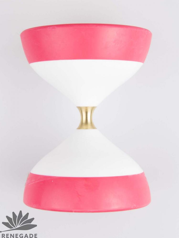 The Wide Axle Taiwanese Diabolo, is made with the traditional center used for double wrap string tricks. The cones have a hard plastic white interior and a soft rubber ring on the edge. The center is brass. This diabolo spins very true and if you are trying to do diabolo routines with traditional Taiwanese or Chinese styled tricks this is the type of diabolo used.
