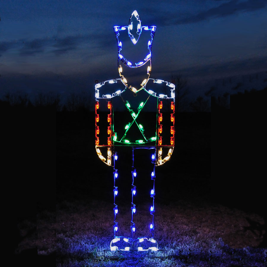 Designed and made by Holiday Lighting, Inc. for your residential or commercial Christmas light display, this mesmerizing 7.8-foot LED Toy Soldier Light Display is hand-built using high-quality materials, including 84 commercial-grade C7 LED lights for cost-effective, eco-friendly operation. Each 7.8' lighted toy soldier arrives to you pre-lit and ready to install. Although it is designed to be inserted into the ground, it can be displayed on a solid, flat surface with the use of a floor stand, if desired. A flat shipping cost of $48.00 will be added to all orders in the 48 contiguous U.S. states (customers in Canadian provinces see shipping tab below).